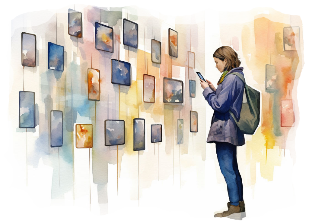 Muzea i galerie często umieszczają kody QR obok eksponatów, które po zeskanowaniu prowadzą do dodatkowych informacji lub multimedialnej prezentacji dotyczącej danego dzieła sztuki.