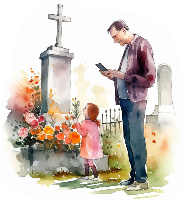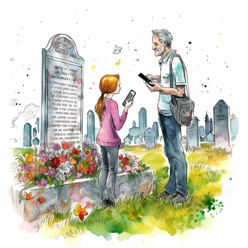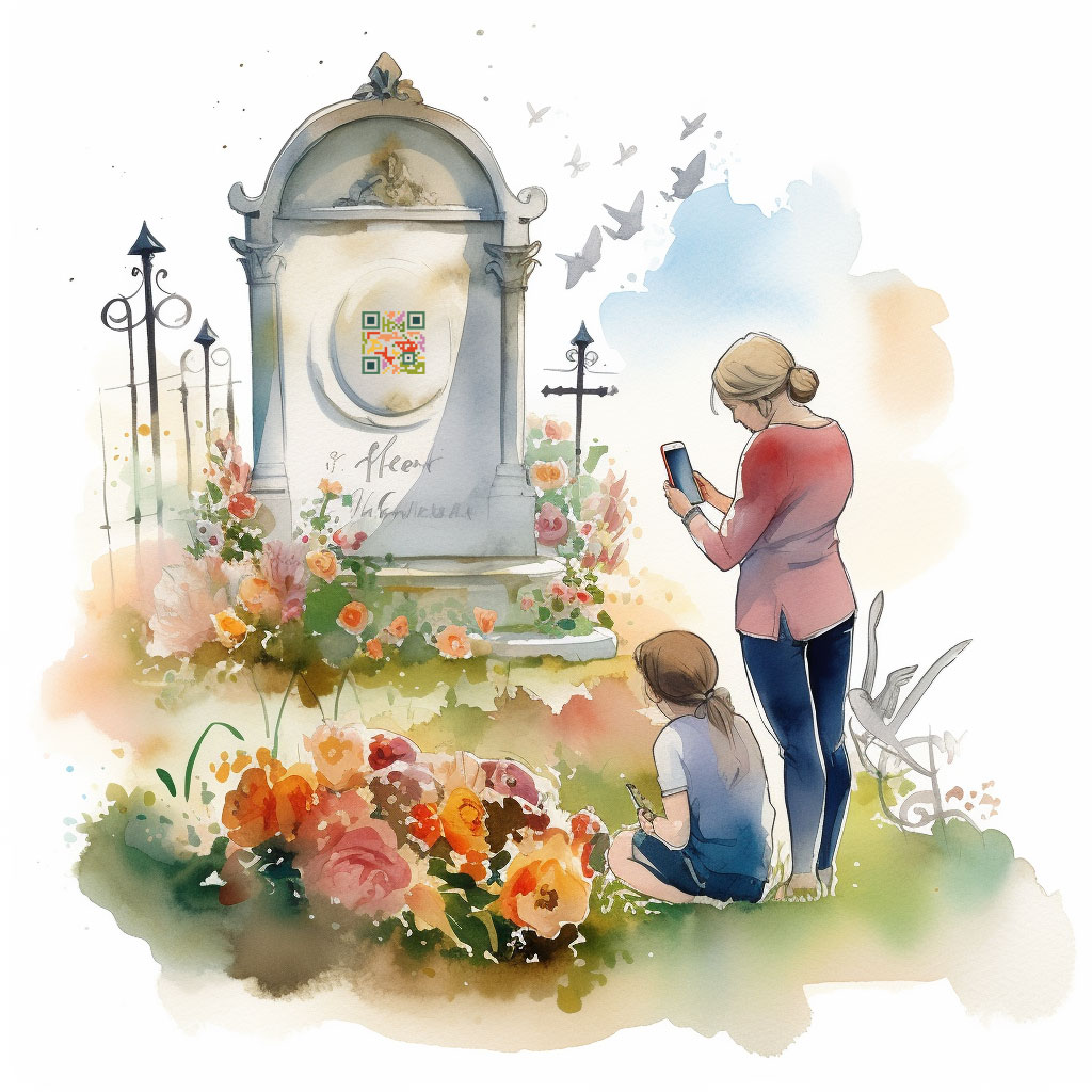 Tabliczka z kodem QR przy pomocy smartfona prowadzi do strony internetowej z biografią zmarłej osoby, gdzie można zamieścić nie tylko podstawowe informacje, ale także zdjęcia, listy osiągnięć, ulubione cytaty. To doskonały sposób na zachowanie i przekazanie przyszłym pokoleniom pamięci o zmarłych.